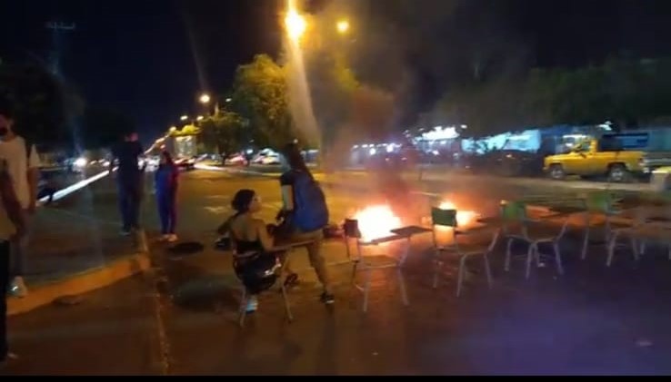 La protesta generó caos en la vía, ya que incluso sacaron los pupitres y quemaron llantas como parte de las acciones.