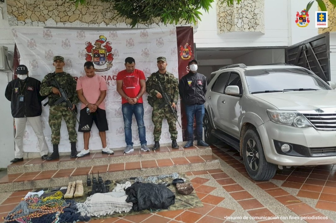 Durante el procedimiento los uniformados capturaron en flagrancia a Danilo Antonio Jordán Jiménez y José Carlos Sierra Toscano, a quienes la Fiscalía les imputó los delitos de secuestro extorsivo agravado en concurso homogéneo y cohecho por dar u ofrecer.