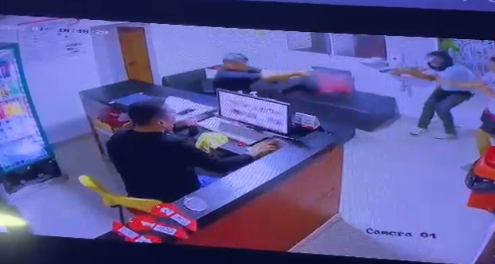 El momento del intento de atraco quedó registrado en las cámaras de seguridad del hotel.