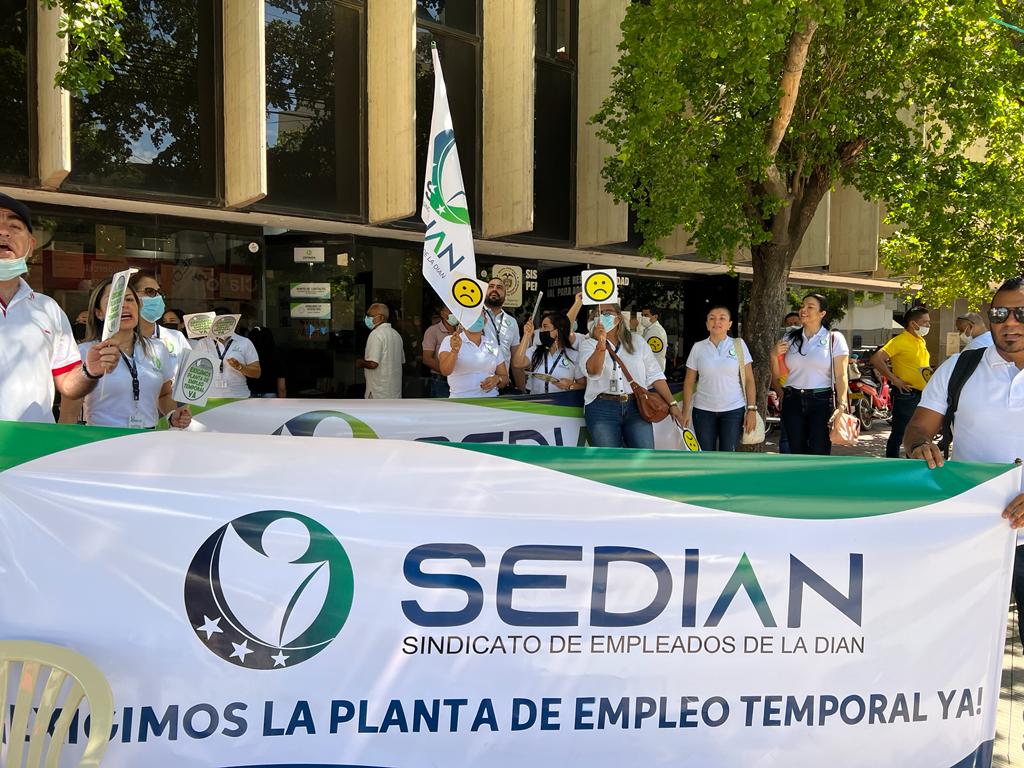 Este jueves los empleados de la Dirección de Impuestos y Aduanas Nacionales, Dian, seccional Valledupar, se unieron a la protesta nacional, quienes exigen al Gobierno nacional que cumpla con los compromisos realizados.