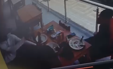 En las imágenes se observa como un sujeto armado entró con un arma de fuego e intimidó a uno de los comensales y lo despojó de sus pertenencias.