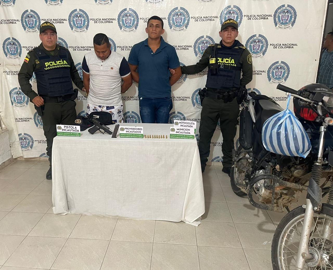 Ambos sujetos huyeron desde La Victoria hasta las torres de apartamentos de Lorenzo Morales donde fueron capturados y les incautaron una pistola de color negro calibre 9MM.
