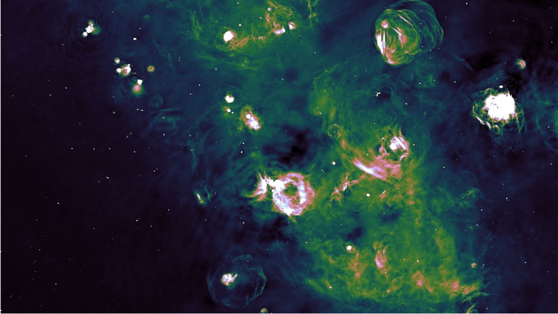«Esta nueva imagen muestra una región de la Vía Láctea, solo visible para los radiotelescopios, donde podemos ver una emisión extendida asociada con el gas de hidrógeno que llena el espacio entre las estrellas moribundas, relacionado con el nacimiento de nuevas estrellas y burbujas calientes de gas llamadas ‘restos de supernova’. Se han descubierto más de 20 posibles remanentes de supernovas nuevos como resultado de la combinación de estas imágenes, donde solo se conocían siete anteriormente», comentó el profesor Andrew Hopkins, de la Universidad de Macquarie (Australia).