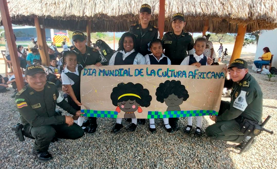 A través del Grupo de Protección a la Infancia y Adolescencia, la Policía Nacional celebró en el corregimiento de Guacoche, jurisdicción de Valledupar el Día mundial de la Cultura Africana y Afrodescendiente.