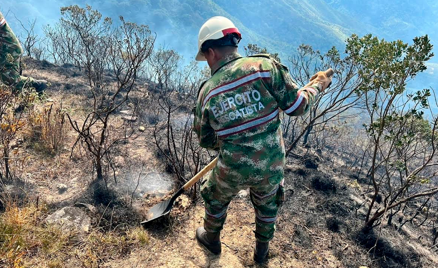 “En estos momentos, el grupo de soldados permanece en el sitio tratando de sofocar el incendio su totalidad, subrayó Camargo”