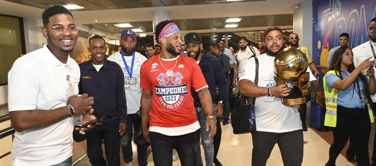 El avión que trajo a los campeones caribeños llegó con un retraso de algo más de dos horas, aunque esto no importó que decenas se alinearan en la zona de salida de pasajeros del Aeropuerto Internacional de Las Américas, ubicado a unos 25 kilómetros al este de la capital.