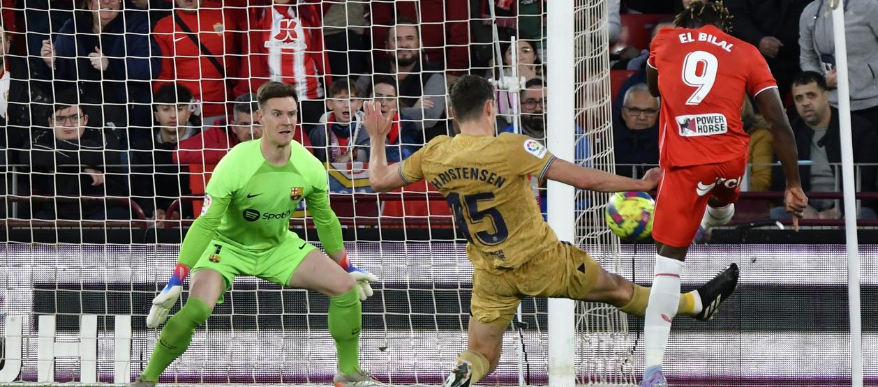 El Almería sí aprovechó la primera que tuvo. Rodrigo Ely recuperó ante Gavi y mandó el balón arriba buscando a Bilal. Este la bajó a Luis Suárez, que se la devolvió. Bilal le ganó la carrera a Christensen y se plantó solo ante Ter Stegen para fusilar el 1-0.
