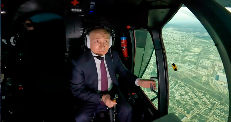 Las imágenes muestran a Putin sentado frente a los controles, poniéndose los auriculares y haciendo ‘despegar’ la aeronave. El equipo simuló el vuelo de un helicóptero a distintas horas del día.
