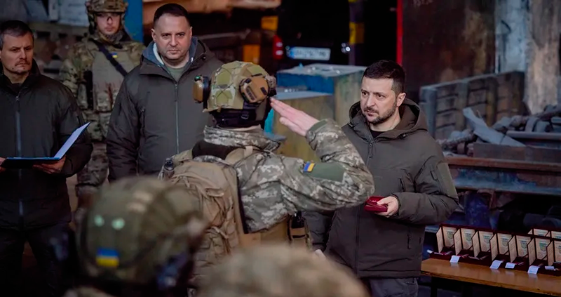 El presidente ucraniano, Volodímir Zelenski, visitó hoy a las tropas de las fuerzas armadas ucranianas que defienden la ciudad de Bajmut, en la región de Donestk , según anunció la Oficina del Presidente.