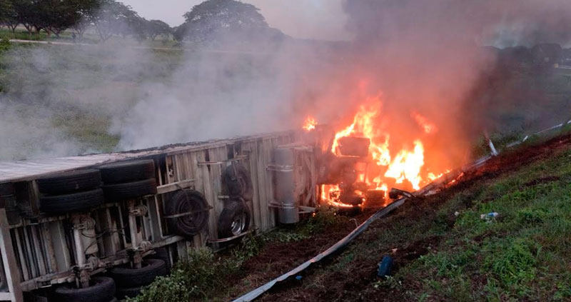 La víctima se desplazaba como conductor de un automóvil de placa KKW- 979 y colisionó por parte lateral de un tractocamión de placas XIE-147, que se salió de la vía y terminó volcado y posteriormente incinerado por completo. El conductor de este vehículo pesado resultó lesionado y fue trasladado a un centro asistencial cercano.