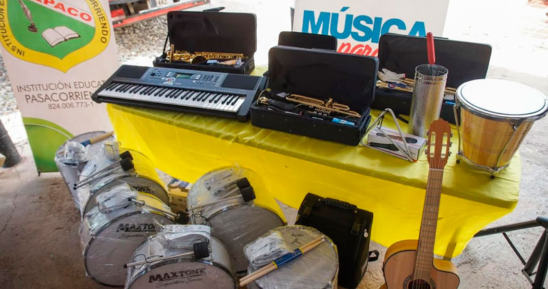 Las entregas se realizaron en las instituciones educativas del corregimiento Pasacorriendo, así como en el Agropecuario y Ernestina Pantoja de la cabecera municipal de Tamalameque; San Miguel, Nuestra Señora del Carmen, José María Campo Serrano y Jorge Eliécer Gaitán, en Aguachica; y José Mejía Uribe, San Juan Bautista y Nuestra Señora del Carmen en La Gloria. En cada una de ellas se entregaron 40 instrumentos musicales, entre los que se cuentan cajas, guacharacas, acordeones, saxofones, tambores y guitarras.