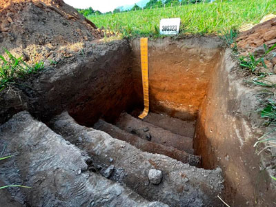Este proceso en campo inicia con la apertura de cajuelas (hoyos de 50 centímetros), para identificar las principales características de los suelos que permitan definir dónde se toman las muestras que serán analizadas en el Laboratorio Nacional de Suelos del IGAC y con esto, identificar el pH, el color, la textura y la fertilidad entre otros.