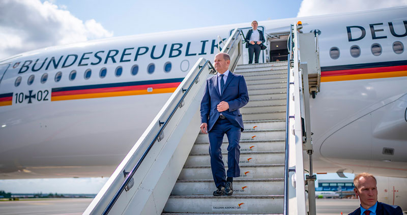El hombre en su propio coche se unió al convoy de camino al aeropuerto de Fráncfort y cuando Scholz bajó de la limusina para subir al avión, corrió hacia él, le estrechó la mano y lo abrazó. Ni los guardaespaldas ni el personal de seguridad pudieron evitar el incidente.