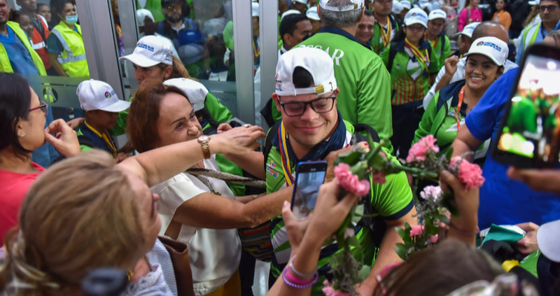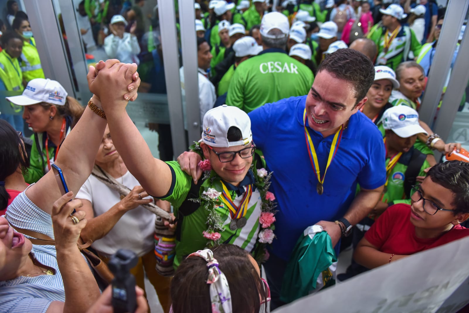Estas emociones se vivieron la tarde de este sábado, en el aeropuerto Alfonso López de Valledupar, al momento del recibimiento de los 50 deportistas que representaron al Cesar en las Olimpiadas Iberoamericanas Fides, realizadas en Bogotá, en cuya delegación se encontraba Daniel Bornacelly, nadador que logró dos preseas de plata, la cual dedicó a su gran amiga, la recordada Rosa Rosado.