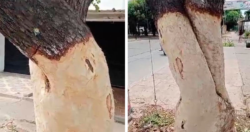 Otro de los más recientes casos se presentó el pasado fin de semana en la calle 11, primera etapa del barrio Garupal, donde un árbol fue pelado en su tronco para acabarlo poco a poco.