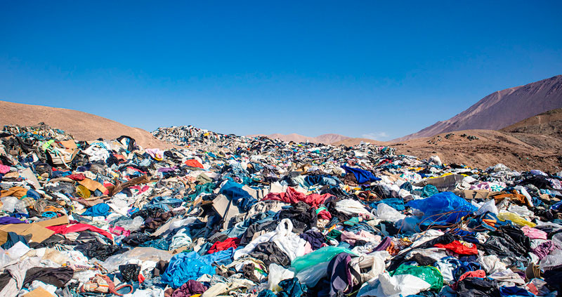 Un ejemplo del masivo desperdicio textil son las gigantescas montañas de ropa en el desierto de Atacama en Chile, que agrupa 60.000 toneladas de prendas producto de la moda rápida, cuya acumulación incluso puede ser vista desde imágenes satelitales. Con RT