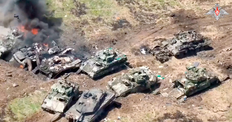En concreto, 1.831 tanques y otro tipo de vehículos blindados fueron destruidos. Entre ellos figuran 25 tanques alemanes Leopard, 21 vehículos de combate de infantería Bradley de fabricación estadounidense y 7 tanques ligeros franceses AMX que fueron suministrados a Ucrania.