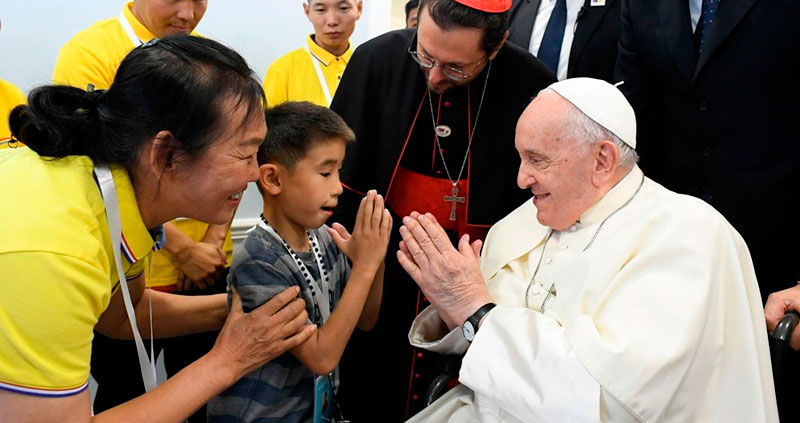 El papa visita un centro de caridad en Mongolia y asegura que la Iglesia no hace proselitismo