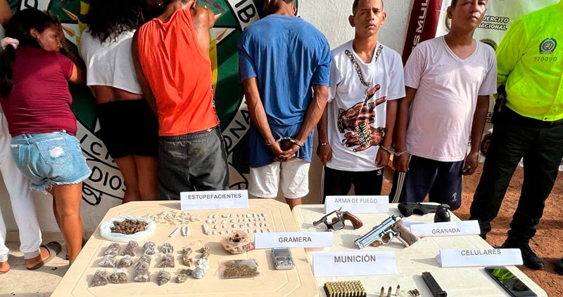El operativo además de las capturas dejó incautaciones como un revólver, una pistola, una granada de fragmentación, 460 gramos de marihuana en pequeñas cantidades dosificadas, 148 gramos de base de coca, un celular y una gramera.