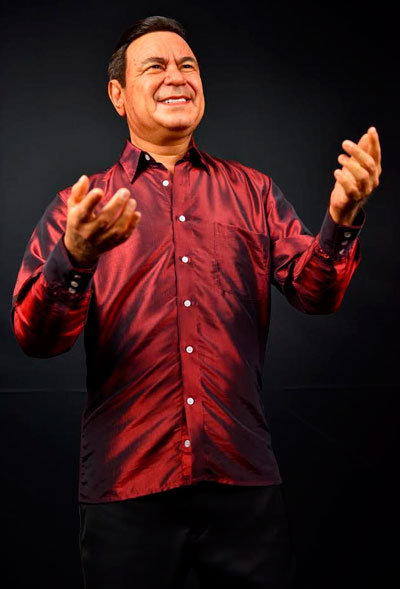 “Maravilloso. Realmente sí me parezco mucho. Es impresionante el parecido y muchas gracias a la Gobernación. Es una felicidad recibirla aquí en mi tierra preferida, la tierra de mi padre. Es un acto muy lindo, muy hermoso, muy familiar”, así fueron las palabras del artista, aun en medio de la sorpresa y el asombro al encontrarse por primera vez, de frente, con su figura en cera.