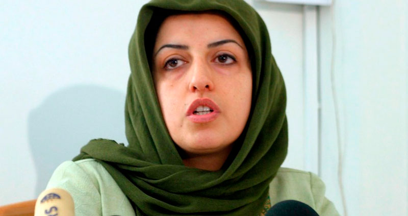 Una de las más importantes activistas por los derechos humanos en el Irán de los ayatolás, Mohammadi recibe el prestigioso galardón en la prisión Evin, donde cumple una condena de 10 años por “la difusión de propaganda contra el estado”.