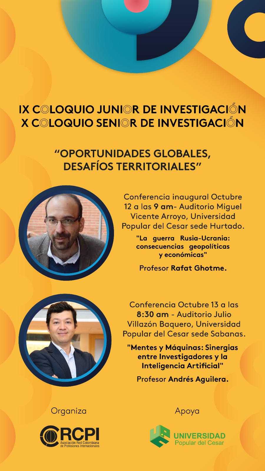 En las sedes Hurtado y Sabanas, la Universidad Popular del Cesar, se lleva a cabo este 12 y 13 de octubre, del IX Coloquio Junior y X Coloquio Senior de Investigación “Oportunidades Globales, Desafíos Territoriales”, evento organizado por la Red Colombiana de Profesiones Internacionales.