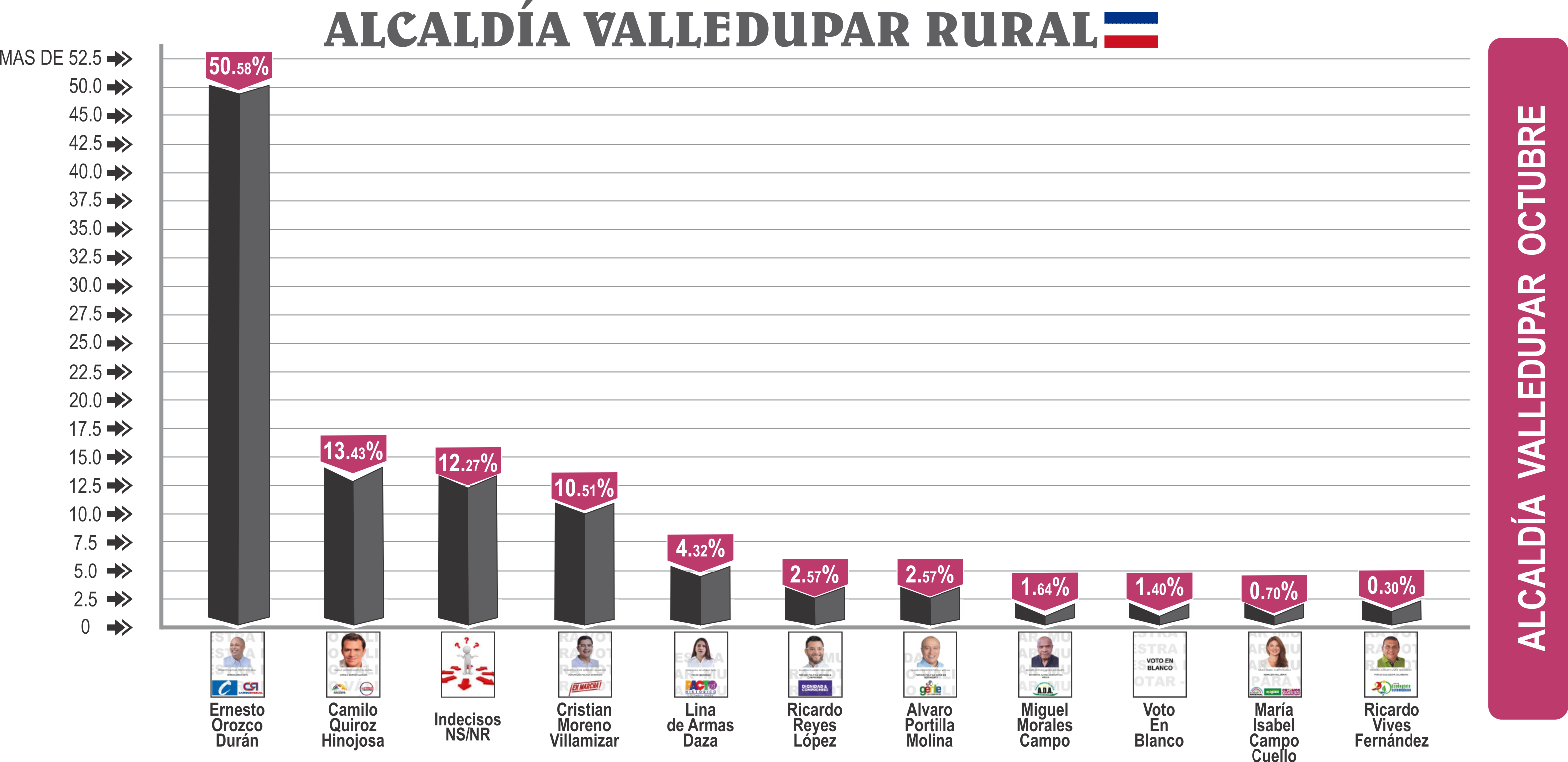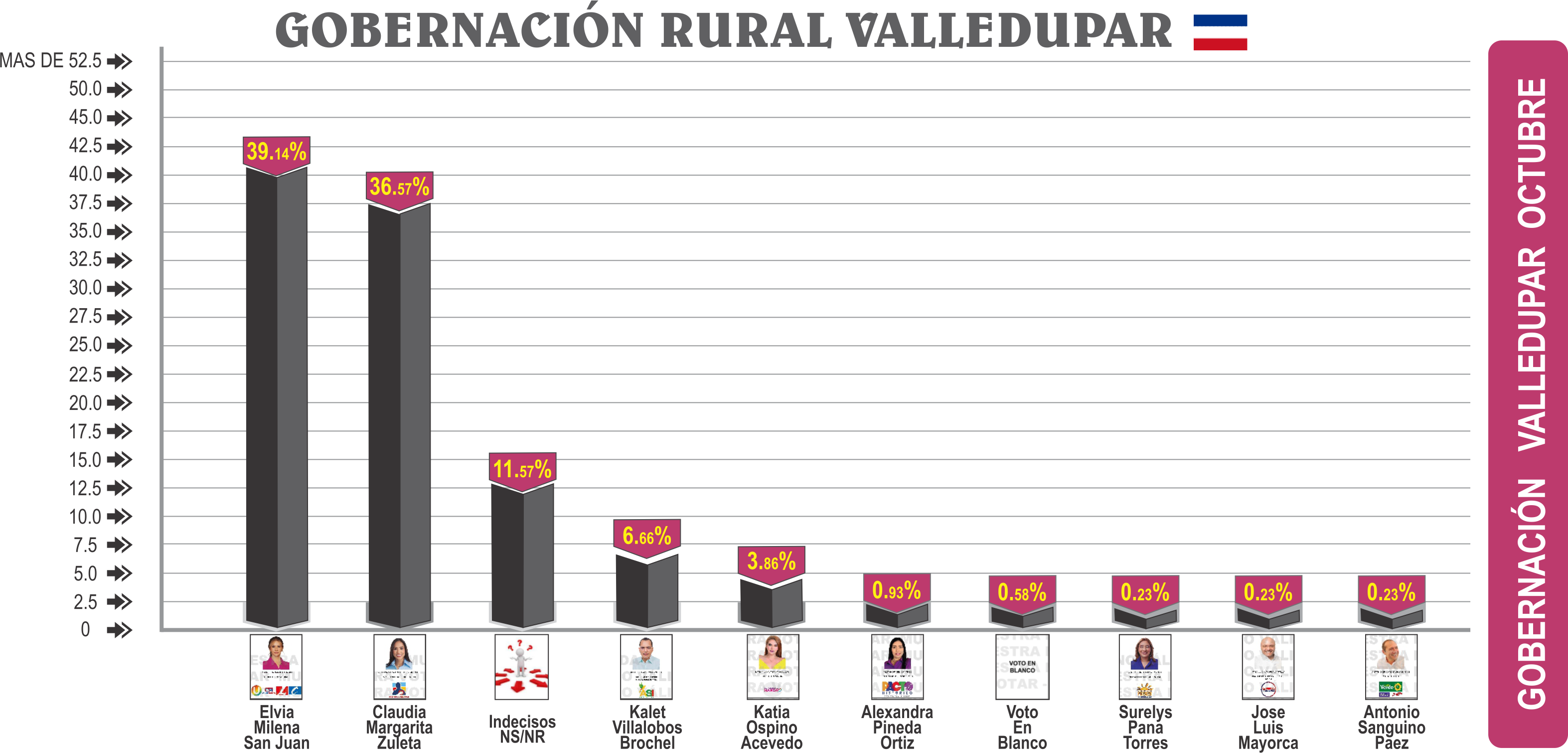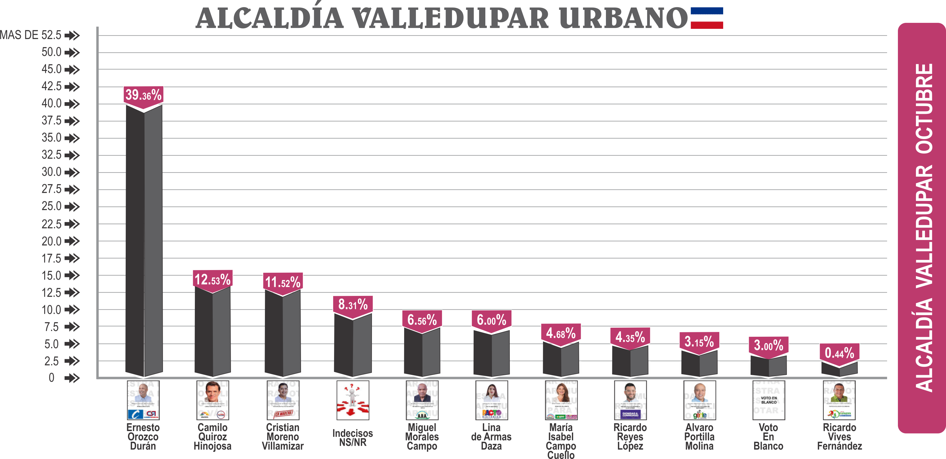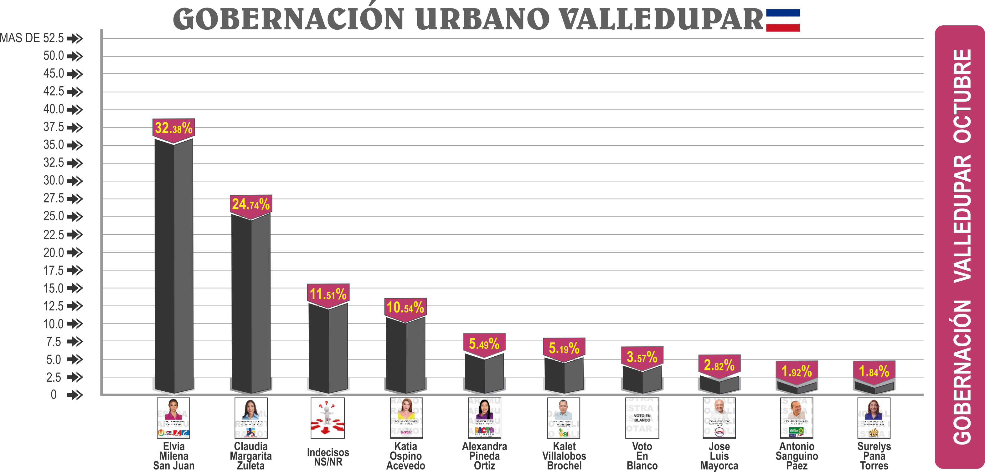 Con el objetivo de conocer la percepción de la ciudadanía frente a temas de opinión pública y preferencias electorales en el departamento del Cesar, de cara a las elecciones regionales del próximo 29 de octubre, en el territorio se aplicó una encuesta de medición que representa un universo de más de 800 mil votantes activos.