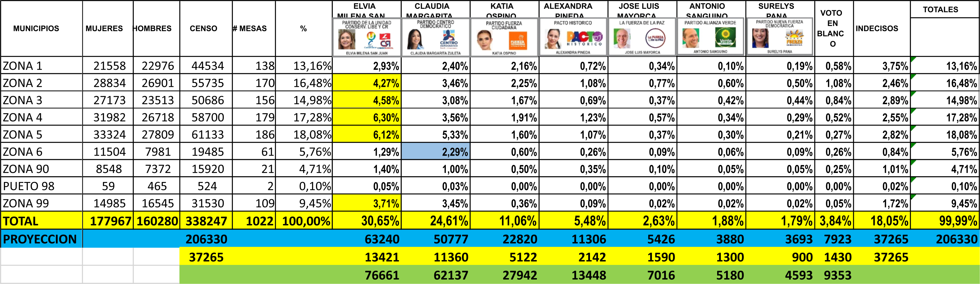 En este gráfico está la misma información de Valledupar ponderada y proyectada en votos.