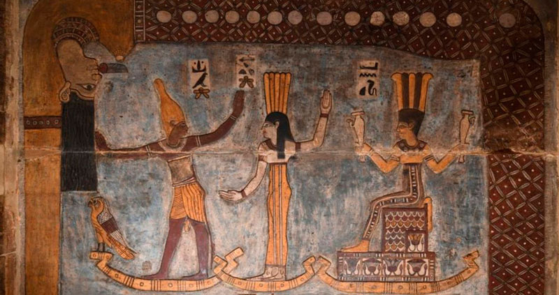 Entre las pinturas que recuperaron su colorido original destaca una de las deidades egipcias Orión (también llamada Sah), Sothis y Anukis yendo en barcos con la diosa del cielo Nut, en una representación que simboliza el antiguo Año Nuevo egipcio.