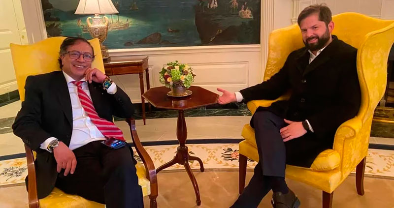 Los presidentes de Colombia y Chile tuvieron una reunión tranquila en la antesala de la Cumbre de Líderes de Alianza para la Prosperidad Económica en las Américas. El presidente Petro salió tarde del país y llegó sobre el tiempo a territorio norteamericano, situación que dejó la reunión en el limbo; sin embargo, minutos después se conocieron fotos del encuentro.