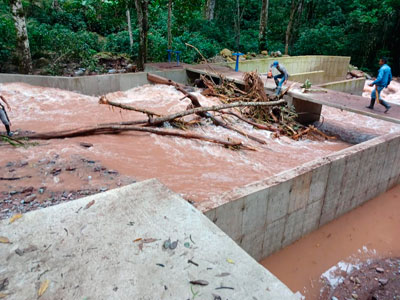 El más reciente aguacero, de más de ocho horas, en la parte alta de la Serranía del Perijá, ocasionó la creciente del afluente que arrastró grandes árboles y rocas que destruyeron dos bocatomas de los acueductos del municipio y el corregimiento de Sabanas de León.