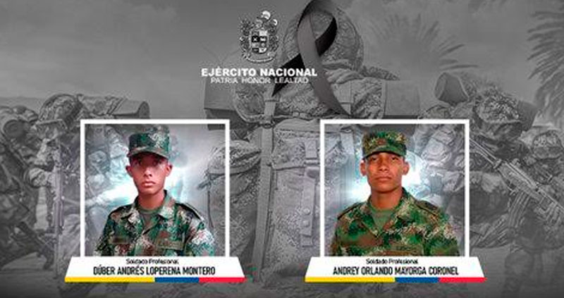 El soldado profesional Dúber Loperena Montero, perteneciente a la comunidad Kankuama de Atánquez, al igual que Andrey Mayorca Coronel, oriundo de Melgar, perdieron la vida, la tarde de este jueves, tras la detonación de un artefacto explosivo instalado dentro de una retroexcavadora en zona rural de Anorí, Antioquia.