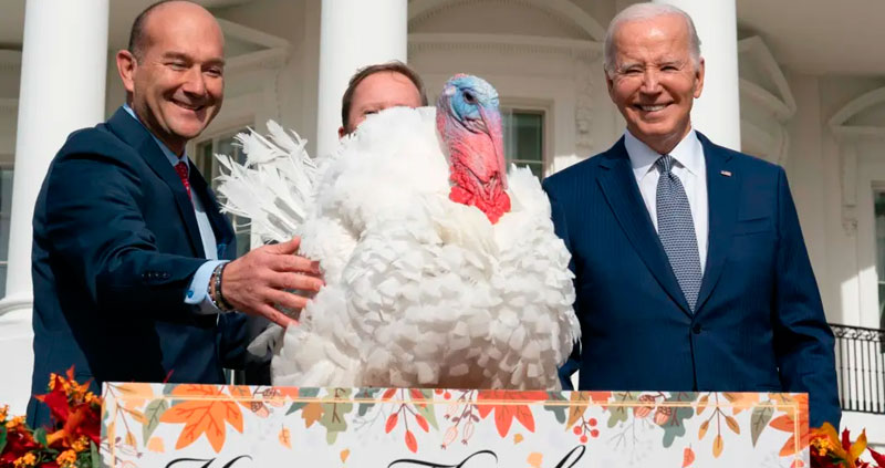 Biden indultó a los dos pavos en un evento en los jardines de la Casa Blanca en el que dio un breve discurso con chistes y chascarrillos.