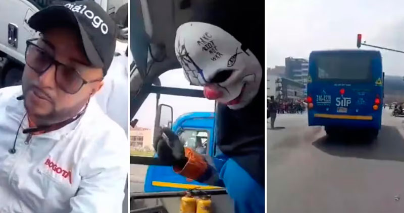 Mientras la tensión escalaba, desde el centro de monitoreo de TransMilenio se sugirió el retorno del bus, propuesta rechazada rotundamente por el encapuchado al volante. “Cuál retornar, le tocó bajarse. Cuál retornar, le tocó bajarse, porque hay unos encapuchados en la manifestación”, se le escucha decir al encapuchado con máscara de payaso en el video.