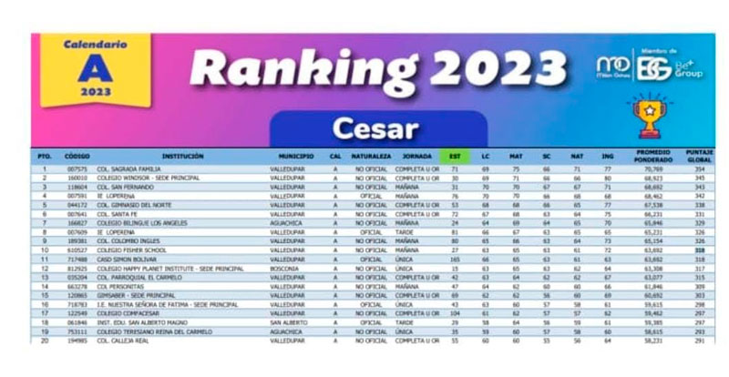 El Colegio Nuestra Señora de Fátima, en Valledupar, adscrito a la Policía Nacional, celebró los resultados obtenidos en la más reciente presentación de las pruebas Saber 11 con un desempeño destacado por parte de sus estudiantes. Prueba de ello, es el tercer lugar alcanzado entre las instituciones educativas públicas de la ciudad.