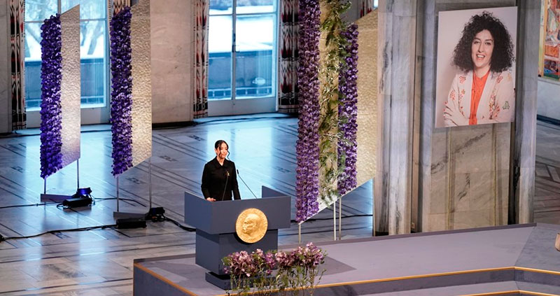 “El Nobel de la Paz de este año reconoce a todas las mujeres valientes de Irán, y de todo el mundo, que luchan por derechos humanos básicos y por poner fin a la discriminación y segregación de las mujeres”, dijo en su discurso previo la presidenta del Comité Nobel noruego, Berit Reiss-Andersen, en una ceremonia presidida por los reyes Harald V y Sonia.