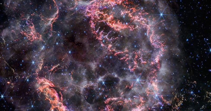 La NASA informó este domingo que la cámara de infrarrojo cercano (NIRCam) instalada en el telescopio espacial James Webb captó con gran detalle, en una nueva imagen, los remanentes de una supernova, cuya explosión tuvo lugar hace 340 años desde el punto de vista de la Tierra.