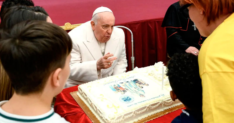 El papa Francisco celebró hoy su 87 cumpleaños con una “fiesta circense” en el Aula Pablo VI del Vaticano en la que hubo tarta y contó con la compañía de los niños y sus familias de un hospital pediátrico de la Santa Sede.