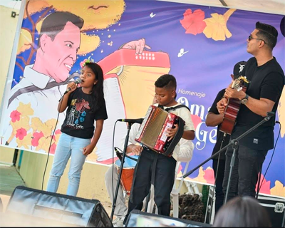 José Juan, José Mario e Isabella Geles, alumnos de la institución, subieron al escenario para ofrecer una presentación cargada de simbolismo y ternura, donde demostraron que el legado de su padre no solo permanece vigente, sino que germina con fuerza en las nuevas generaciones. José Juan y José Mario interpretaron con destreza el acordeón, mientras Isabella acompañó con coros y expresividad, dejando ver el talento heredado de uno de los grandes íconos del vallenato.
