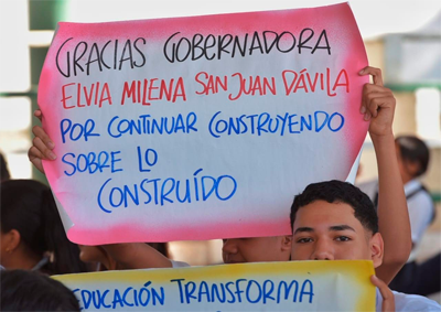 En este evento, la gobernadora Elvia Milena Sanjuan quiso dejar una huella en los estudiantes, en el sentido de motivarlos a permanecer en las aulas, en el proceso de formación, a no perder la marcha.Para ello, la mandataria invitó al artista Martín Elías Jr., quien regaló versos, cariño, fotografías y canciones para los estudiantes, con el fin de motivarlos para que salgan adelante y alcancen la excelencia académica, más ahora que estrenarán una moderna y amplia infraestructura educativa.