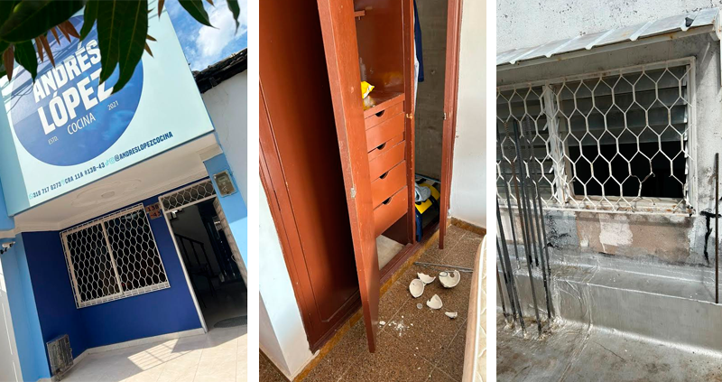 “El hurto fue devastador. Se llevaron casi todo: calderos industriales, cuchillos, carnes crudas, jamones importados, tablas, sartenes, salsas, ollas… Nos dejaron sin los elementos básicos para operar”, relató López visiblemente afectado. Añadió que los delincuentes dejaron huellas en la arena del patio, debido a la lluvia que cayó esa noche, lo que podría ser una pista para los investigadores.