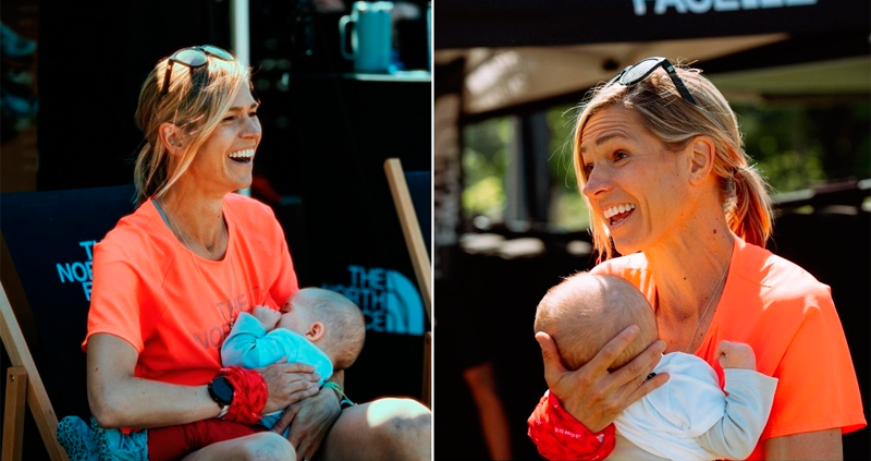 Se detiene 3 veces para amamantar a su bebé y llega de primera en un ultramaratón