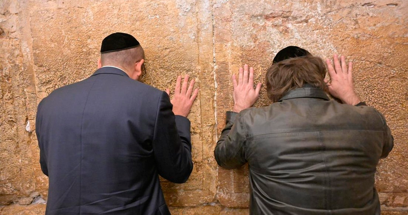 Milei rompe en llanto en el Muro de las Lamentaciones en Jerusalén