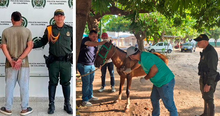Los hechos ocurrieron en la diagonal 19A del barrio Sabanas del Valle, donde los uniformados interceptaron al señor Juan David Quintero, de 21 años, quien conducía una carreta jalada por un caballo que presentaba visibles signos de maltrato.