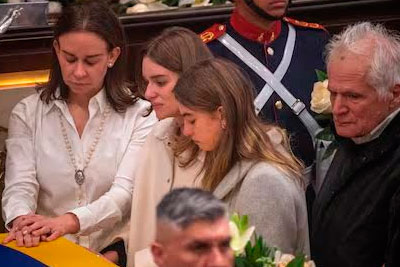 En medio de abrazos, de mensajes de apoyo y aliento, fueron recibidos tanto Miguel Uribe Londoño, padre del fallecido senador Miguel Uribe Turbay, como su viuda, María Claudia Tarazona, quienes caminaron por la nave central del Elíptico en medio de las muestras de cariño de personalidades políticas y familiares cercanos.