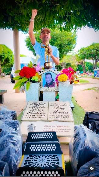 De manera simbólica, desde la tumba donde reposan los restos de Diomedes Díaz en Valledupar, el Rey Vallenato 2025, Iván Zuleta, inició el proceso de entrega de 50 instrumentos a menores con talento que sueñan con interpretar el vallenato, género que él mismo ha representado durante décadas.