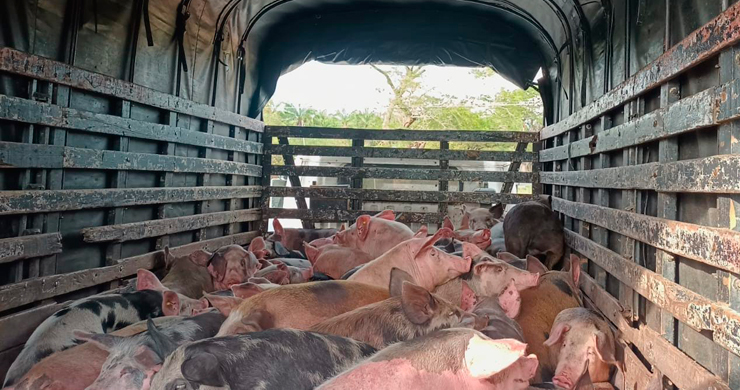 Incautan camión con 85 porcinos por no contar con permisos