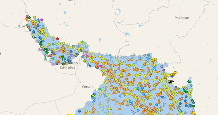 Decenas de buques petroleros y cargueros se han concentrado a ambos lados del estrecho de Ormuz después de que Irán anunciara el cierre total de la vía marítima, según datos del portal de seguimiento de embarcaciones VesselFinder.