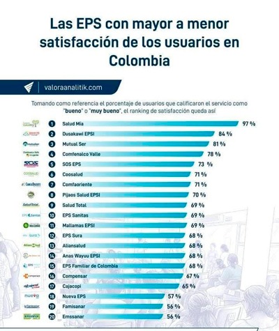 Dusakawi EPSI alcanza 84% de satisfacción del usuario, según informe del SEA