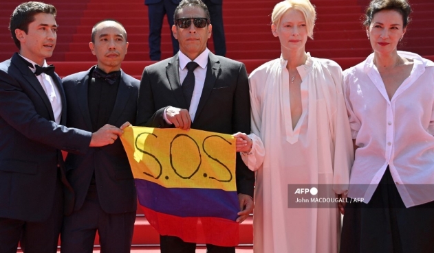 Entretenimiento 16 de julio de 2021 Admin 1 minutos de lectura ‘SOS’: actores y director de ‘Memoria’ exhiben bandera de Colombia en Cannes Junto al director Apichatpong Weerasethakul, los actores de la cinta colombiana enviaron mensaje alusivo a las protestas. Winnie Rodriguez ‘Memoria’ Compartir Leer más